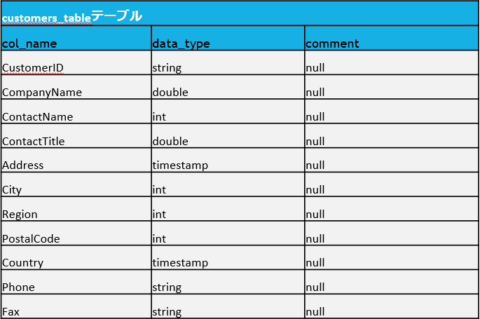 • 列名を変更を実施します(スペースを下線で置き換える、列名を短縮する等)