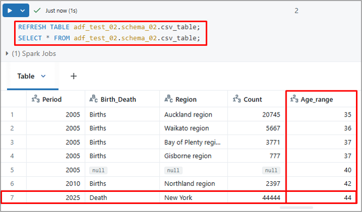 ただし、「Age_range」列や新しいデータがまだ反映されていないのが分かりますよね?では、説明します。