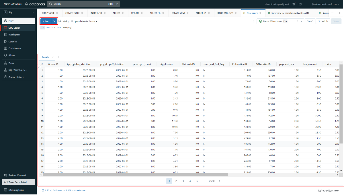 3. Azure Databricks でSQLクエリを実行する手順(ログイン~データ検索)