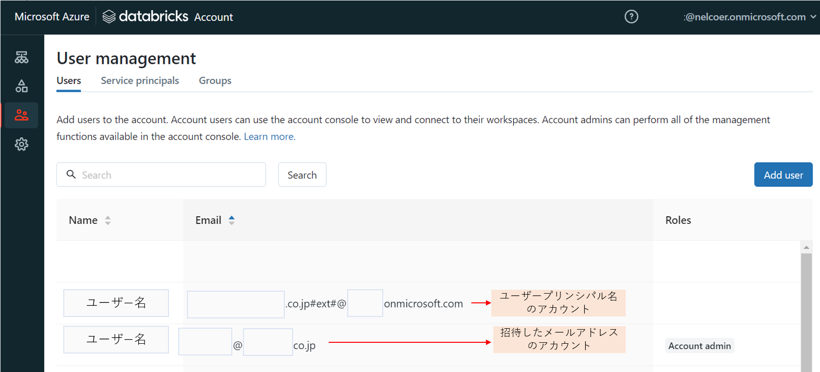 • Azure Databricks アカウント コンソール(以下、アカウント コンソール)