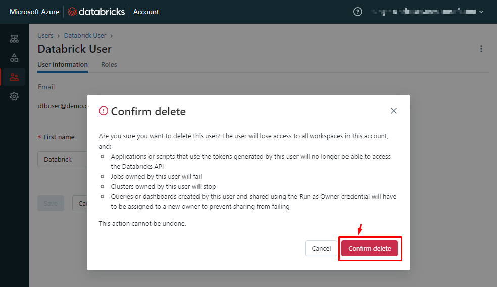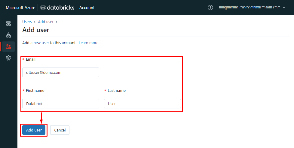 ユーザーを作成する事でDatabricksへログインする事ができるようになり、権限付与など細かな管理ができるようになります。