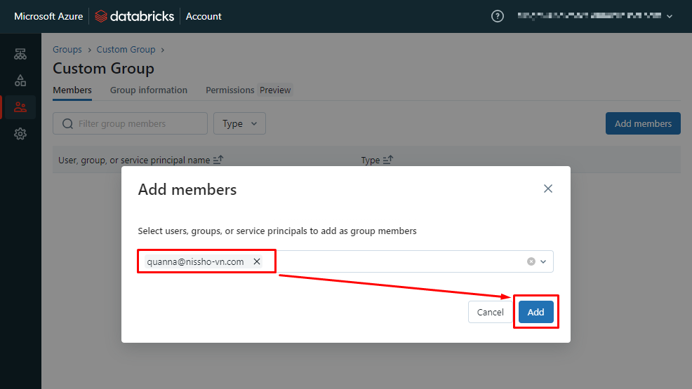 3.Azure Databricks でユーザー作成・グループへの追加、削除を行う