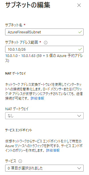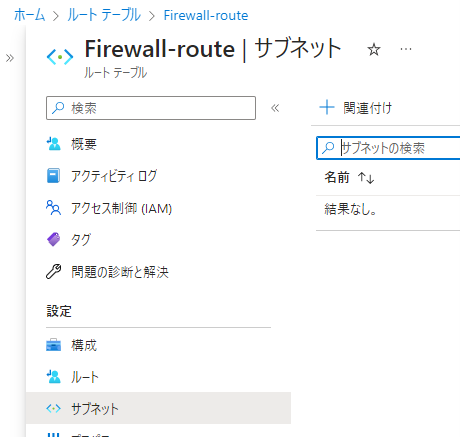 サブネット名のdefaultをクリックし、名前をAzureFirewallSubnetに変更します。