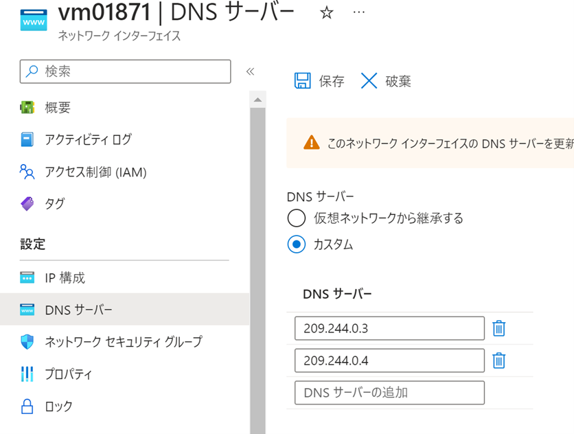 ネットワークインターフェース > DNSサーバーでDNSを登録します。