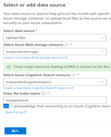 Select Azure Cognitive Search resource: mslearntestcognitivesearch