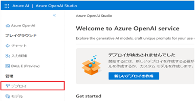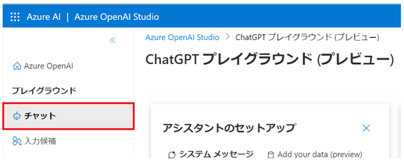 e) デプロイが完了したら、AzureポータルからAzure OpenAI Studioを再度選択してください。もう一度、ChatGPTプレイグラウンドから a)の手順を実施します。
