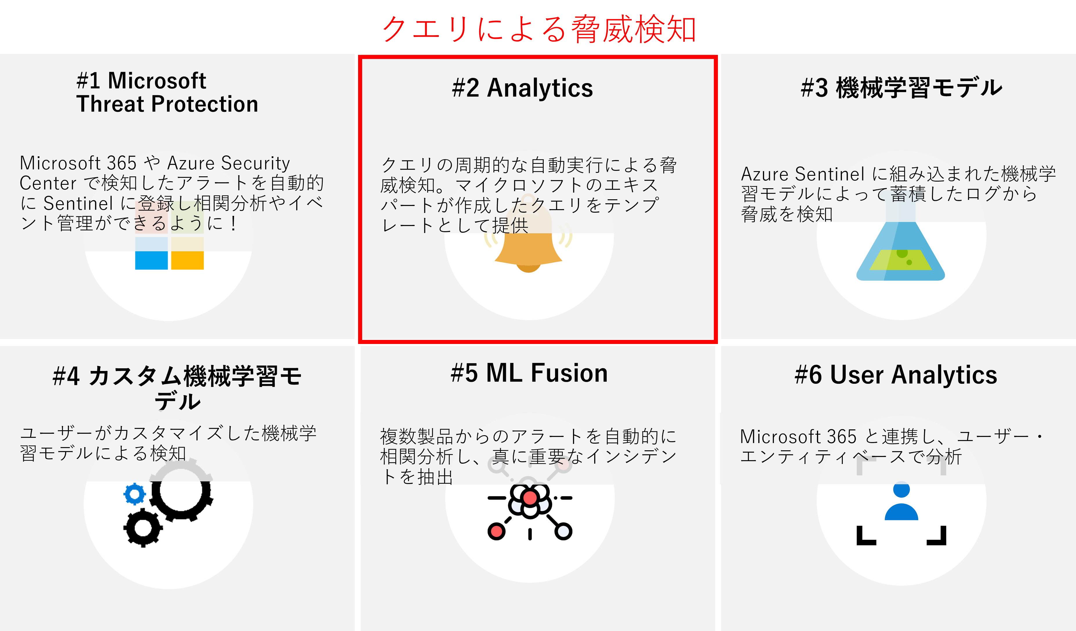 Microsoft Sentinel では大きく分けて6つの脅威検知が可能です。