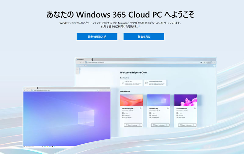 Windows 365はサブスク型で始められる世界初のクラウドPCです。Windows10/11環境を、iOS、Android端末などを含めあらゆるデバイスから月額定額制で利用できます。