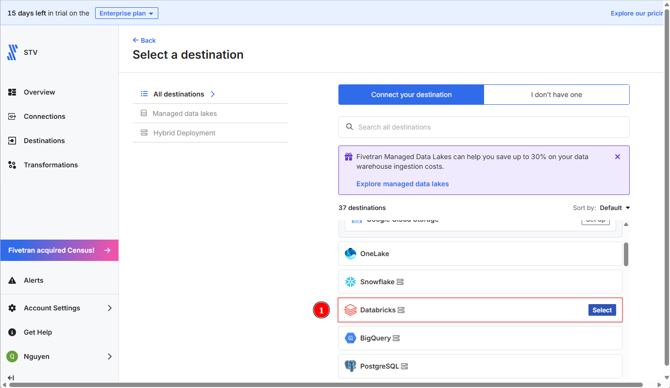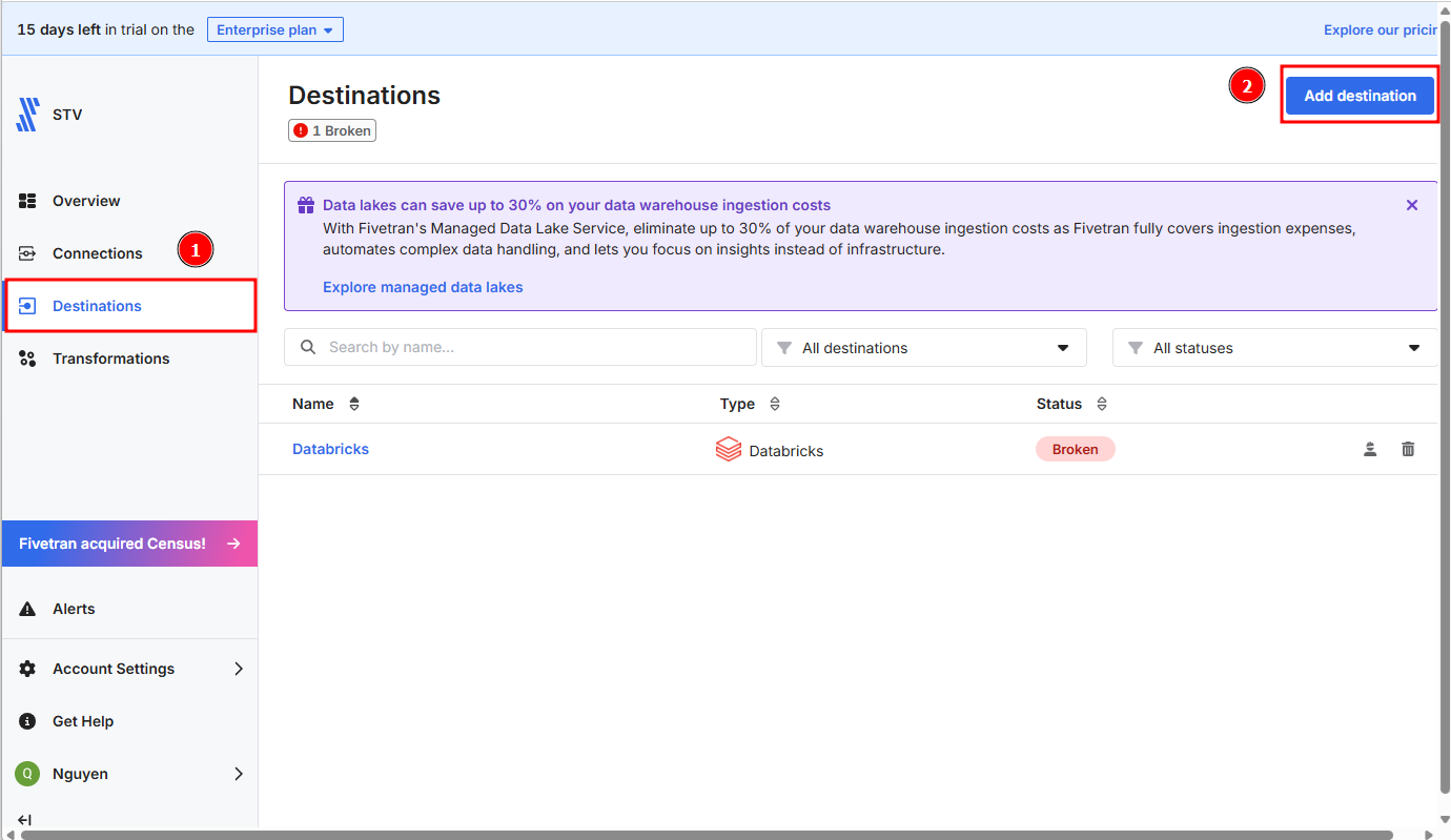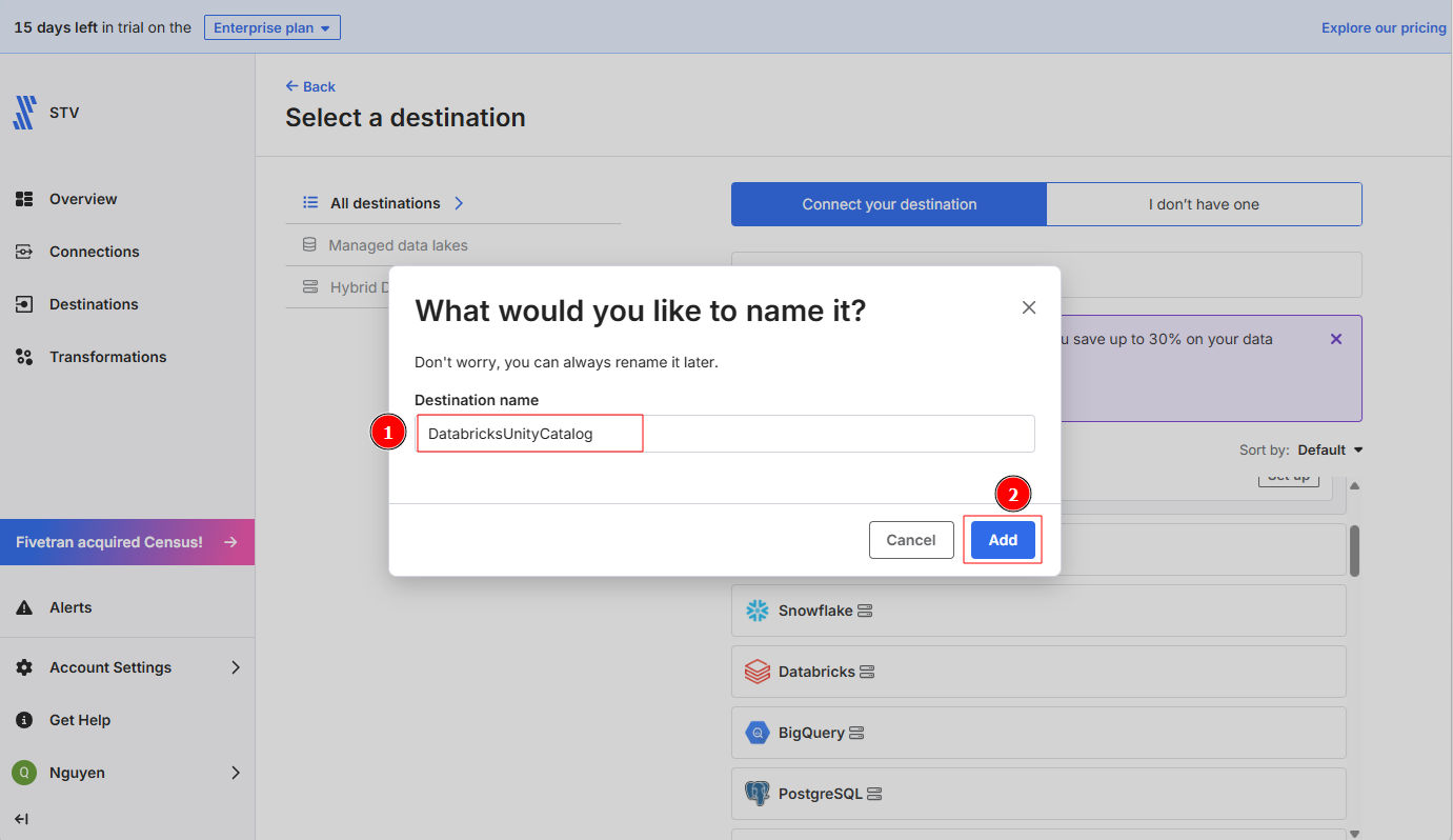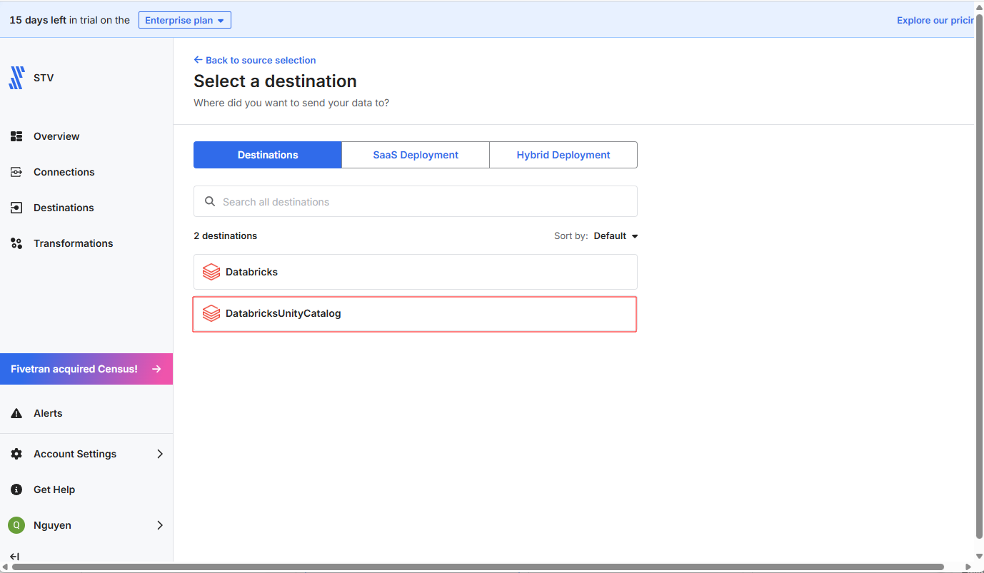 4-3. FivetranのDestinationをDatabricksに設定する