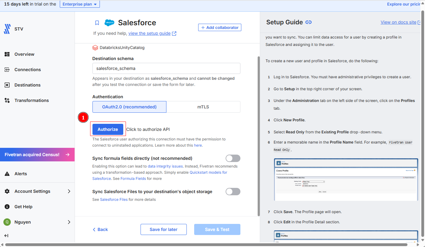 4-4. FivetranからSalesforceへのConnectionを設定する