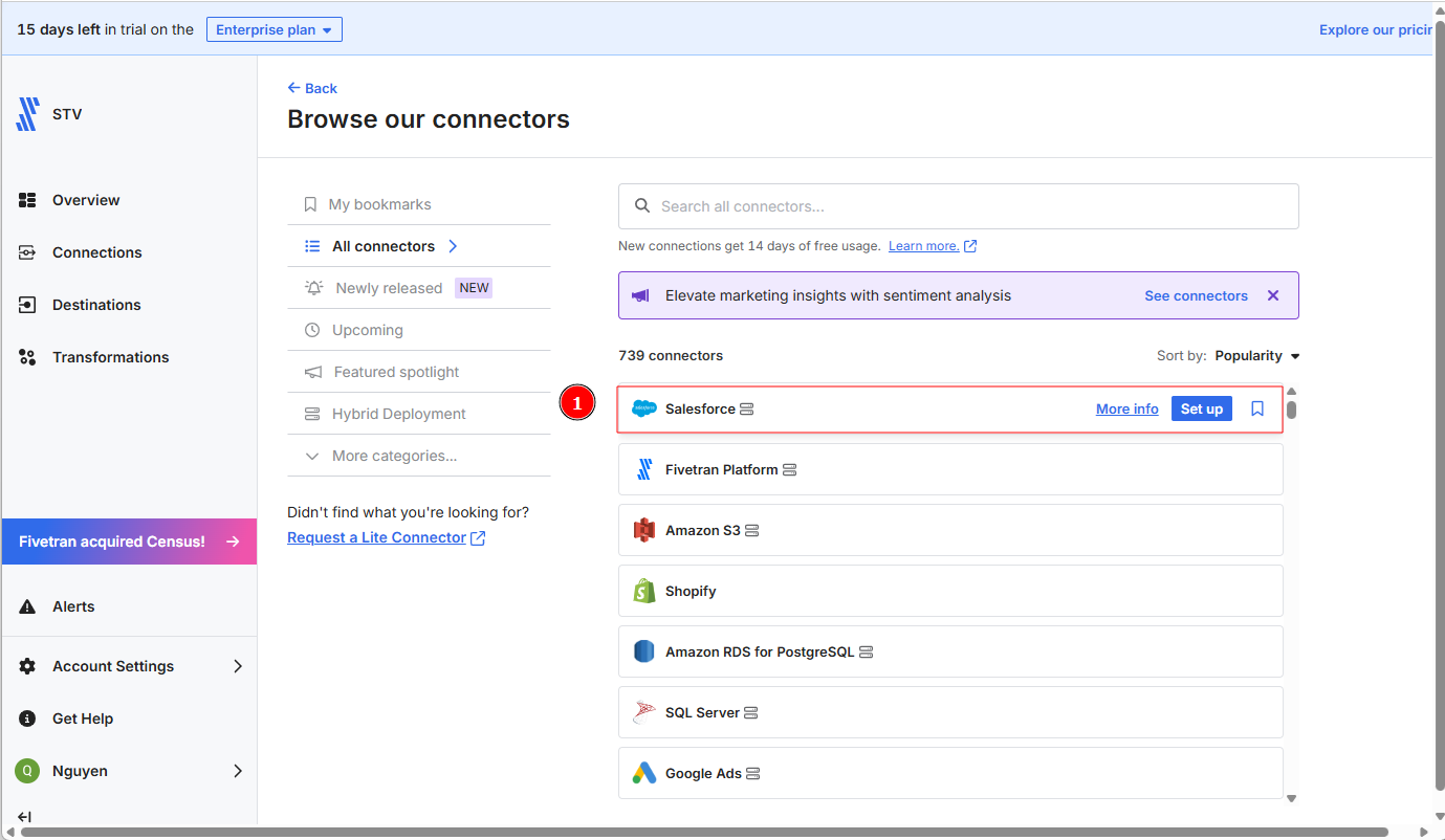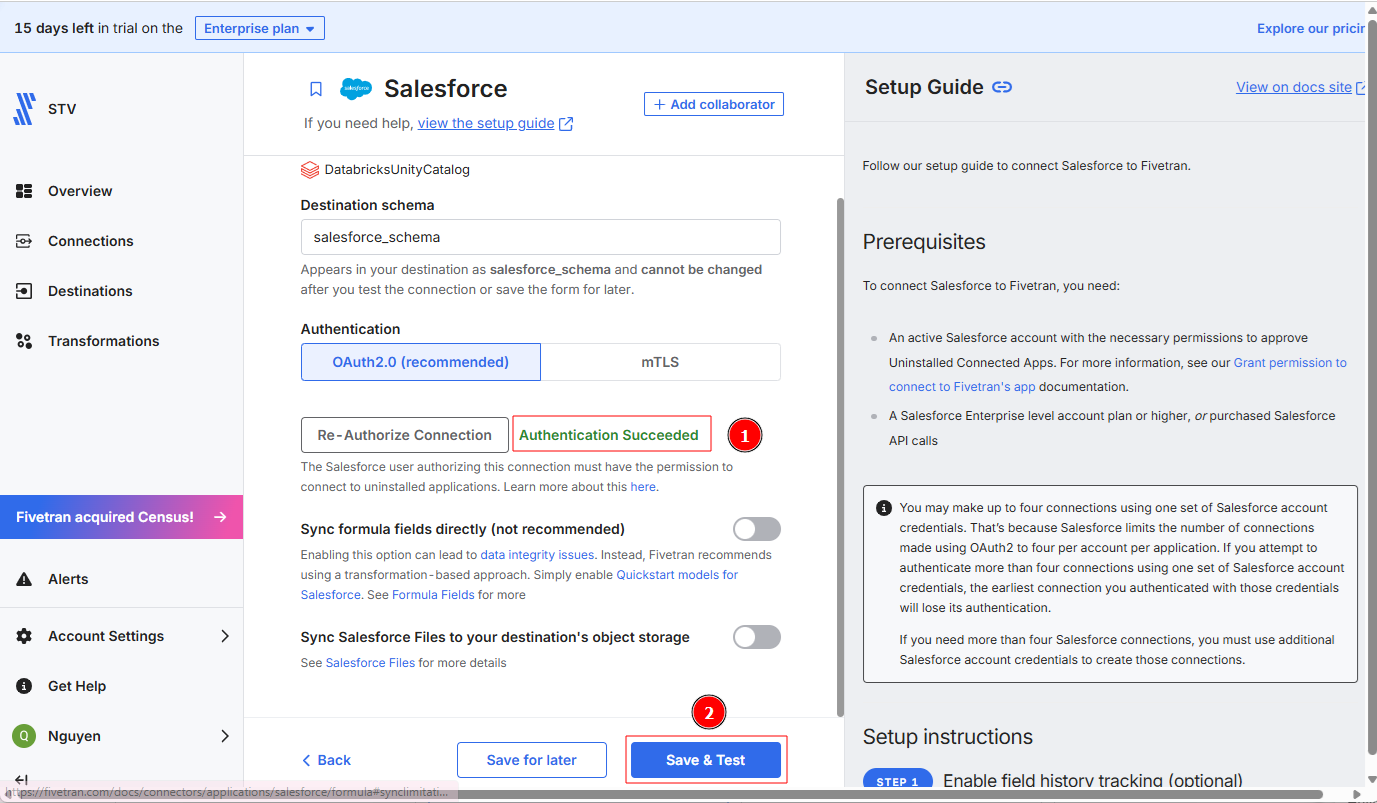 - SalesforceおよびFivetranのアカウントが既に所有されていること