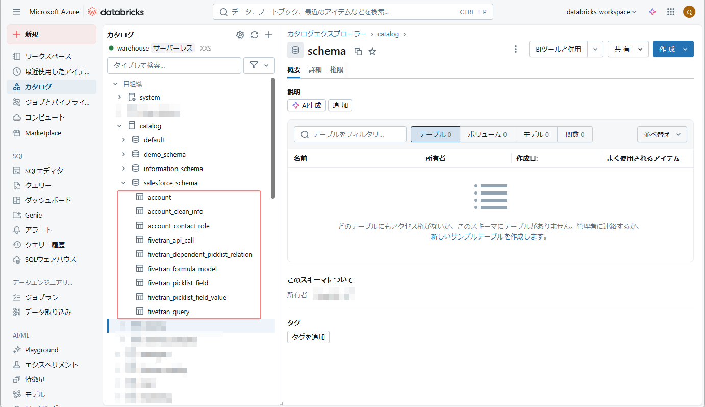 - DatabricksでUnity Catalogが有効化されており、SQLウェアハウスを利用できること