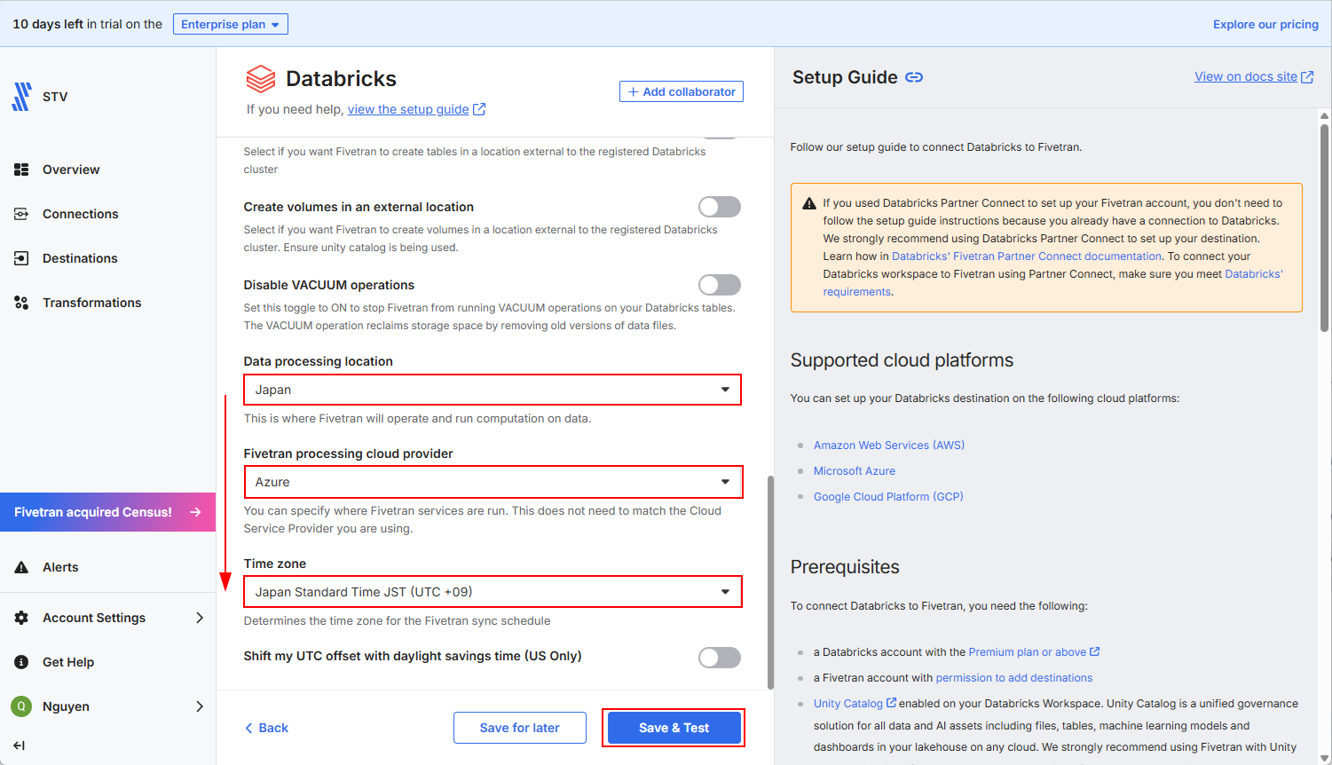 - Fivetran processing cloud provider → 「Azure」
