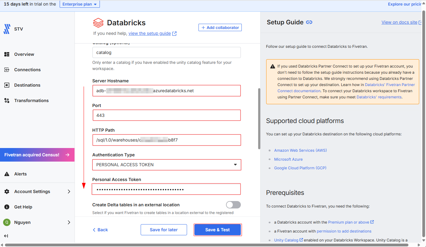 4.FivetranでDatabricksと外部データソースを接続する手順