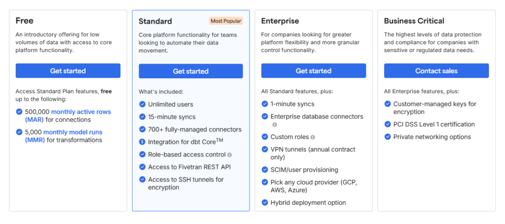 Fivetranの料金プランはデータソースの種類とデータ量によって異なります。