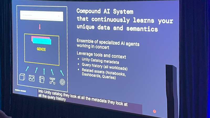 それに加え自然言語で自社データの内容に問い合わせができるGINIEを新たに発表。Unity Catalogと連動しお客様のデータの内容やメタデータを理解したうえで、自然言語の問い合わせに回答をしてくれます。