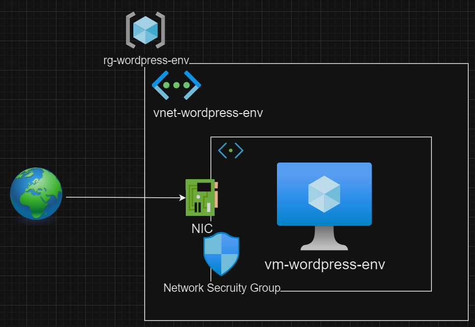 # ... (Your other resources: Resource group, subnet, VM, NSG, NIC, etc.) resource "azurerm_network_interface_security_group_association" "wordpress_association" { network_interface_id = azurerm_network_interface.wordpress_nic.id network_security_group_id = azurerm_network_security_group.wordpress_nsg.id } |