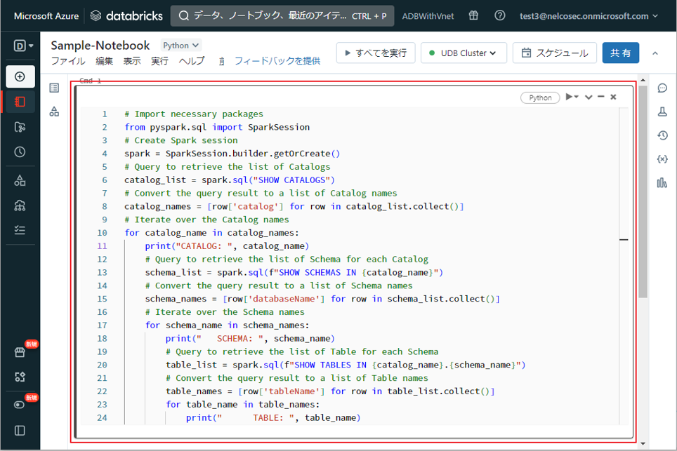 3.ノートブックを使用してアクセス権限があるテーブルの情報を取得する