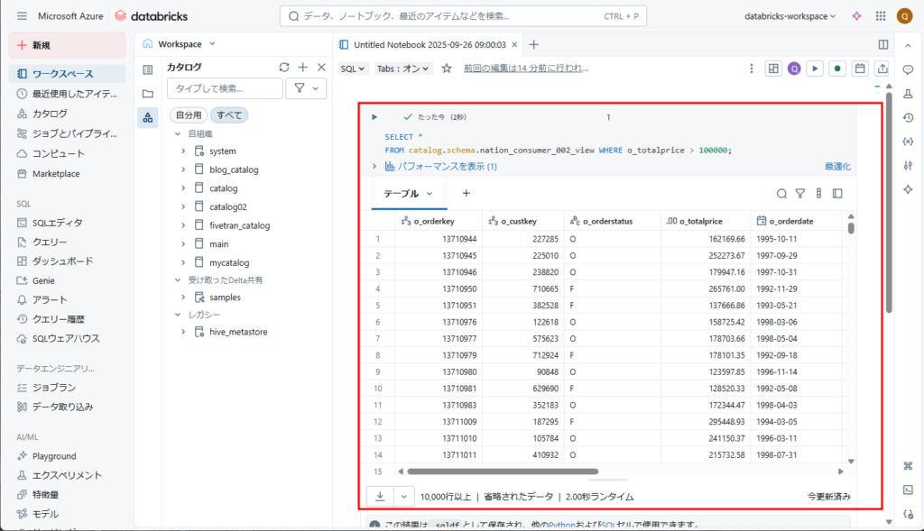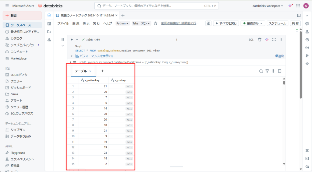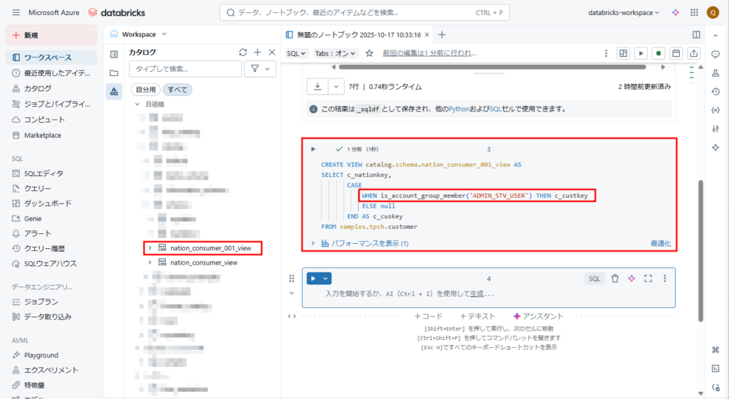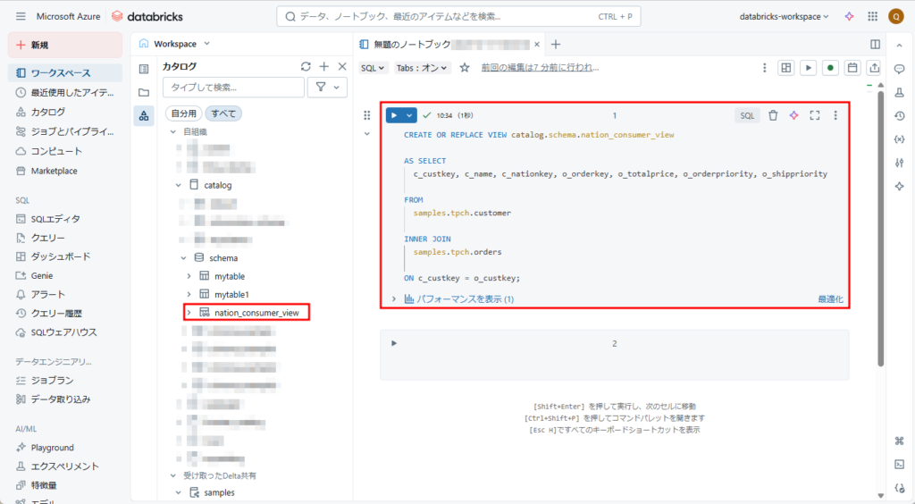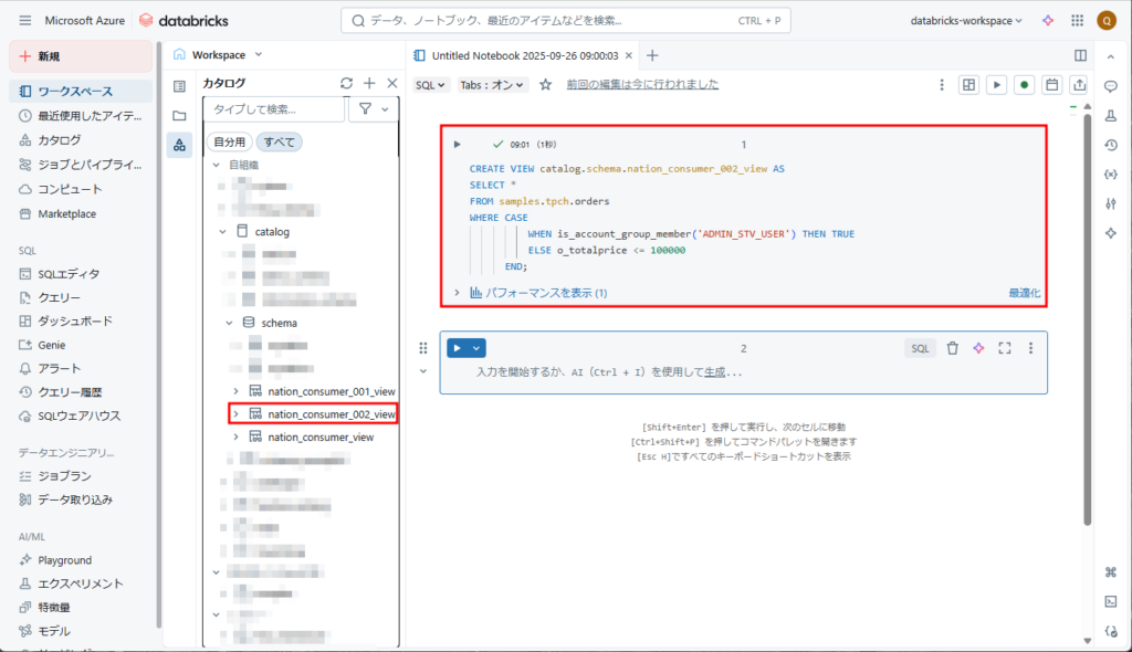 - 2023年10月11日ブログAzure DatabricksでVIEWの作成手順