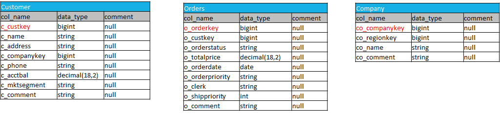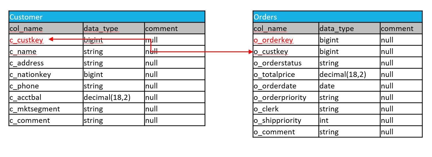 order 及び customerテーブルの構成は以下の通りです。