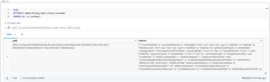「Customer」テーブルの「c_custkey」列に対して Z-order インデックスを作成します。