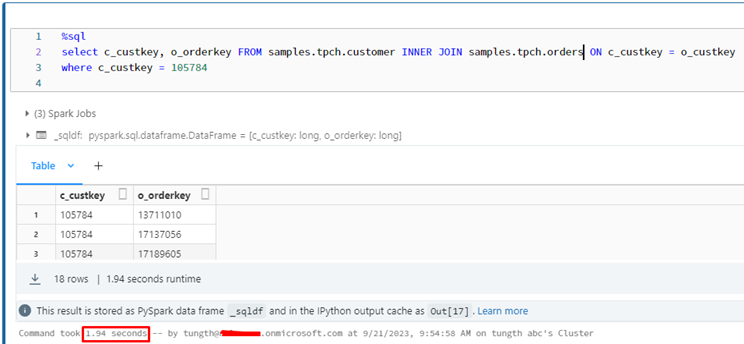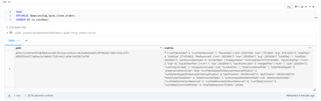 「Orders」テーブルの「c_custkey」列に対して Z-order インデックスを実行します。
