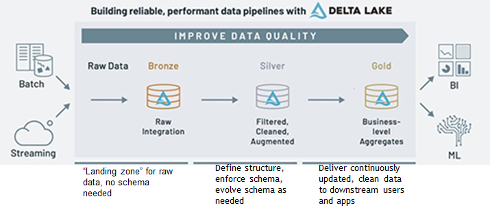 Databricksのホームページに掲載された図から、レイヤーごとに分かりやすい例を含む図を提供します。