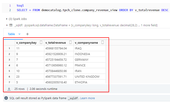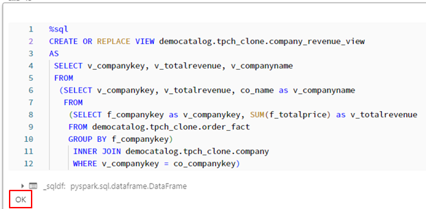 会社の総収益を分析するビューを作成します。custkeyフィールドを使用して、order 及び customerテーブルを結合します。