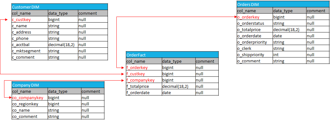 実際には、DIM 、およびFact テーブルに毎日データが追加されますが、今回はVIEWの作成に関する説明であるので、旧テーブルに基づいて新規テーブルを作成します。 データ変換について実践例は別途で説明します。