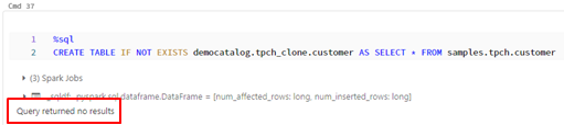 今回は、「tpch」スキーマというDatabricksのサンプルデータを使用します。