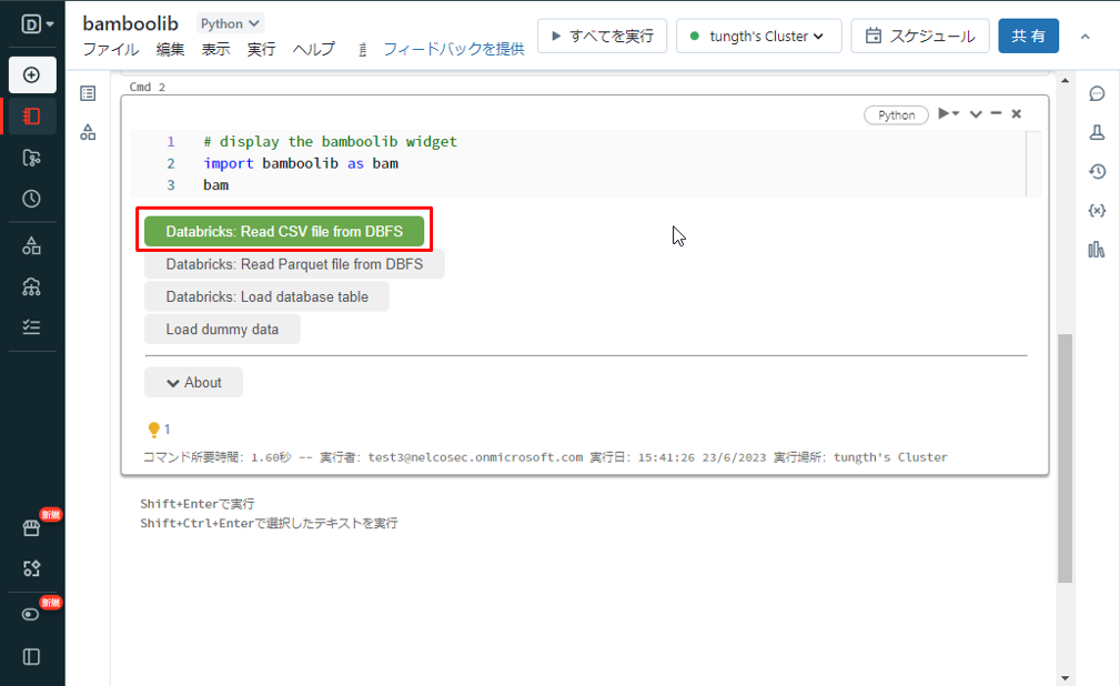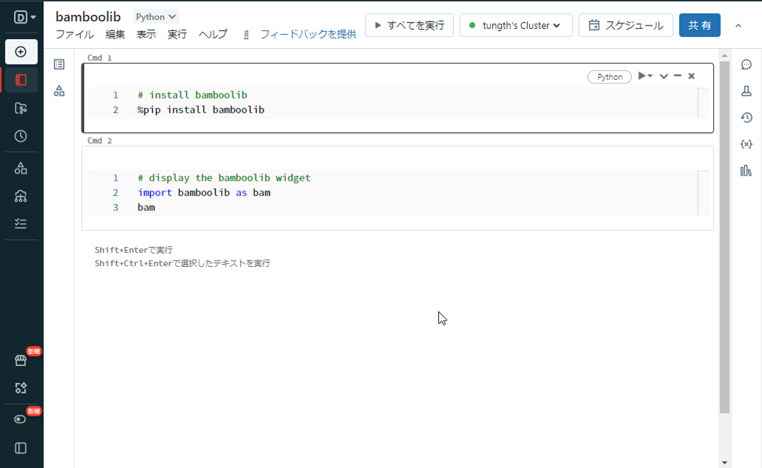 ⑤ 実行後、bamboolib ライブラリがインストールされ、bamboolib ウィジェットが表示されます。