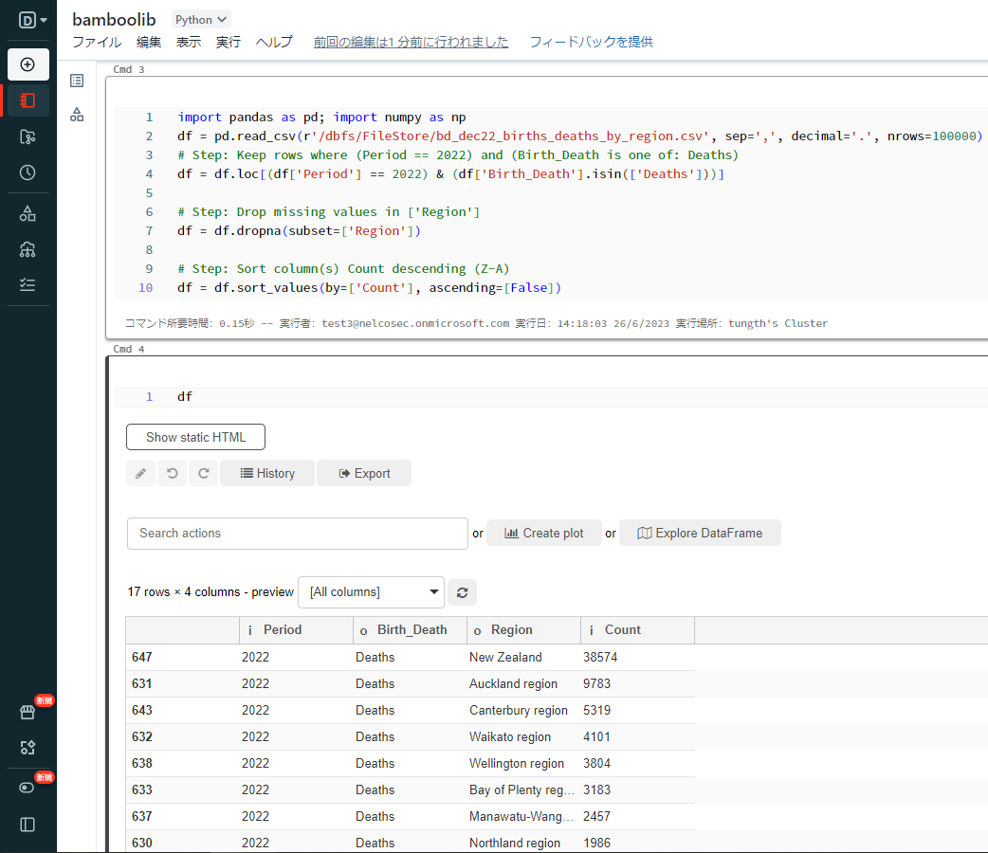 DatabricksでローコーティングでETL/ELTを実現するための bamboolib を利用する方法について説明しました。