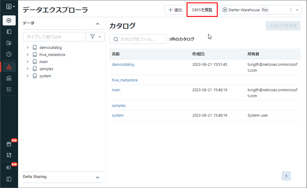 ④ データエクスプローラーから「DBFSを閲覧」を選択します。