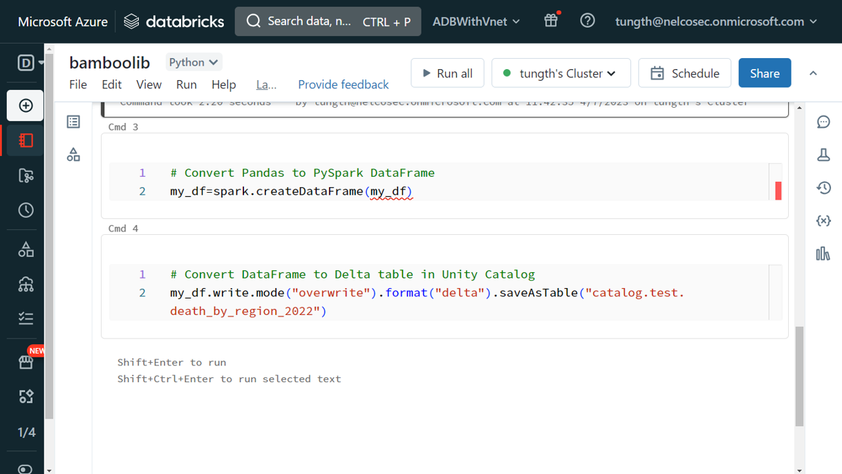 ・操作ユーザーは Azure Databricks ワークスペースにアクセス権限があること。