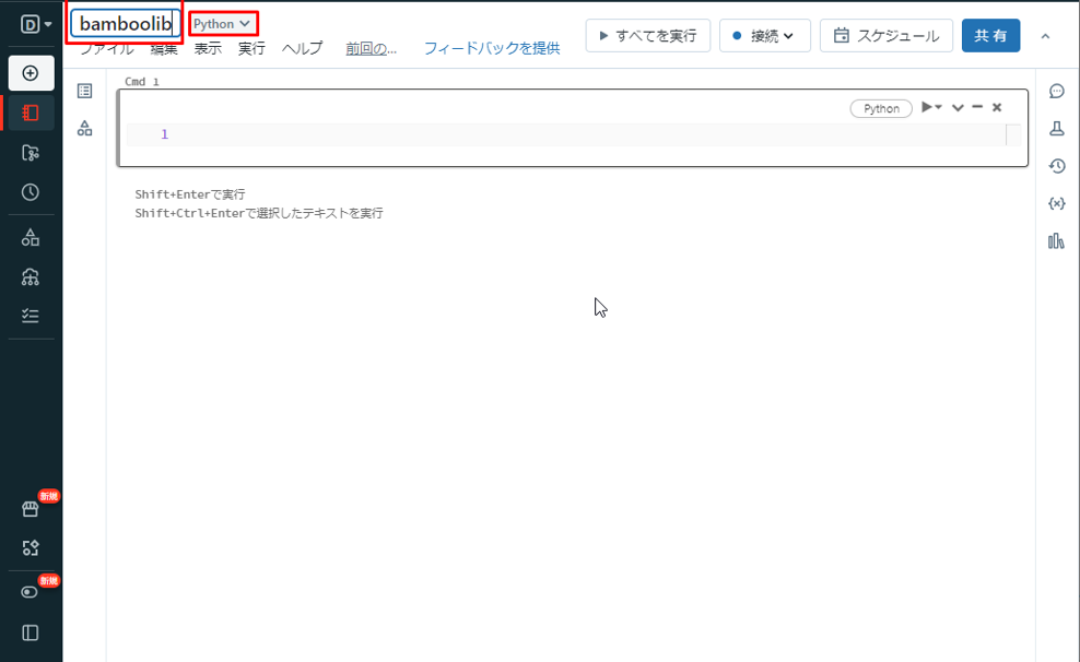 ・操作ユーザーは、ノートブックの作成・実行権限があること。権限が付与されていない場合、管理者に権限を付与してもらう様に依頼してください。