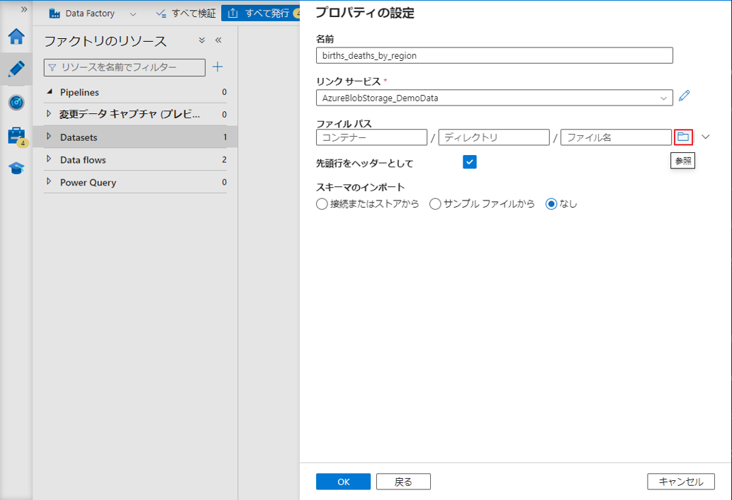 3.Azure Data Factory へ CSV ファイルをインポートする