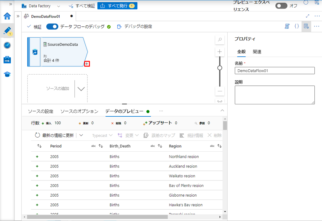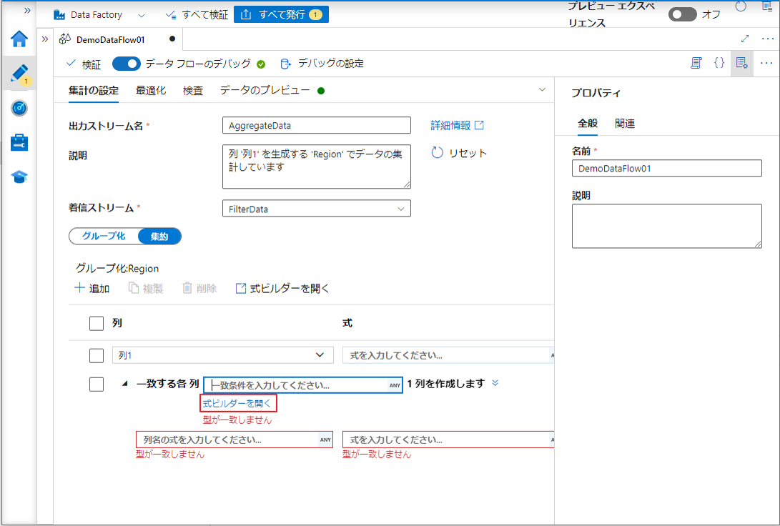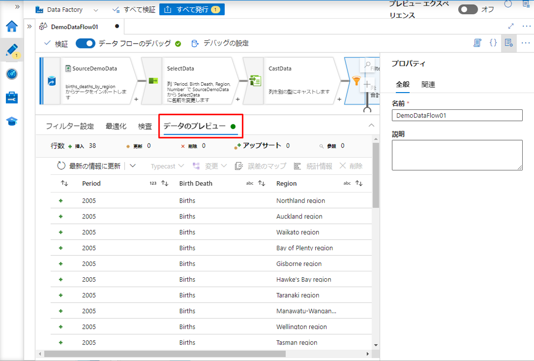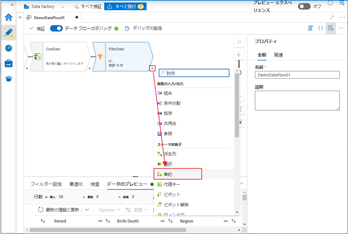 デバッグ モードを有効にする場合は、「データのプレビュー」タブで集計変換のデータをプレビューできます。