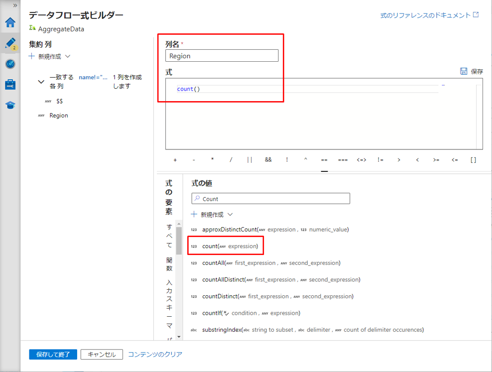式ビルダーの count() 関数を使用して行数をカウントします。
