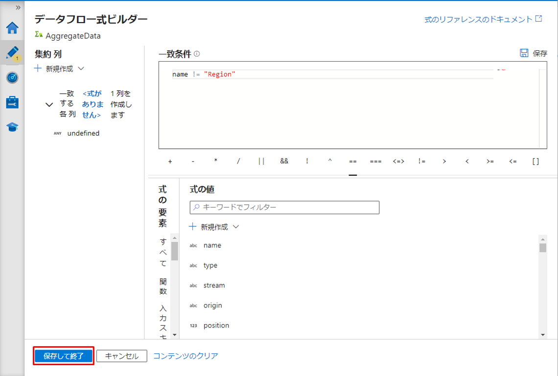 ⑤「保存して終了」ボタンをクリックして式を保存します。