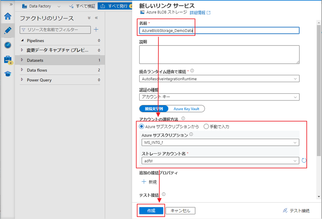 ⑧ 次に、前の手順でデータをアップロードしたサブスクリプションとストレージ アカウントを選択します 。