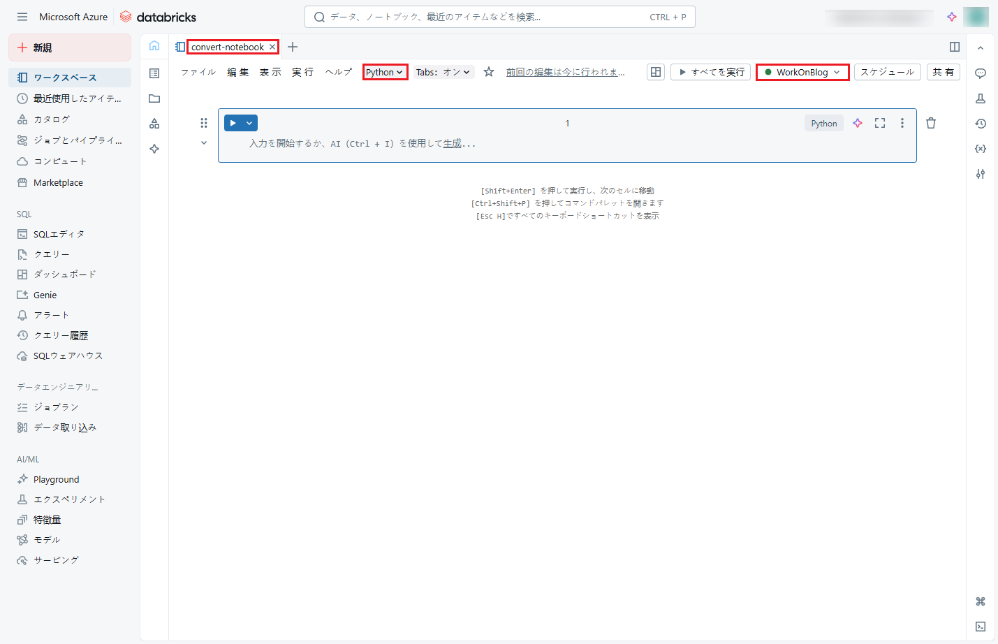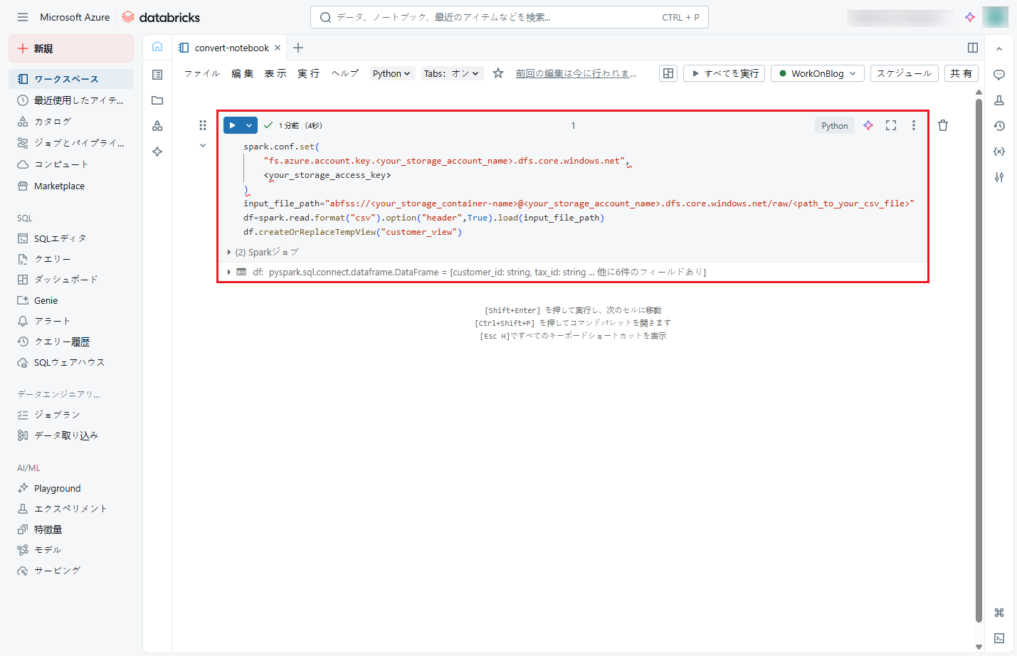 以下のコマンドをノートブックにコピーし、「Shift + Enter」を押して実行します。