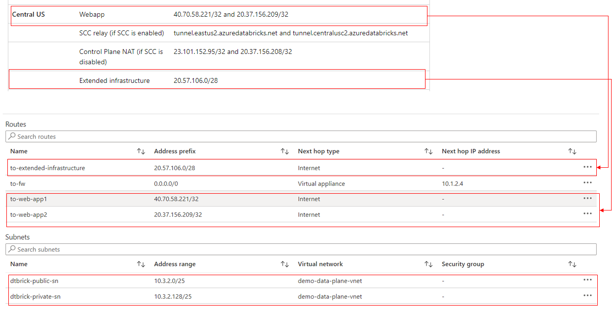 本書では、以下のDatabricksワークスペースのサブネットを使用します。