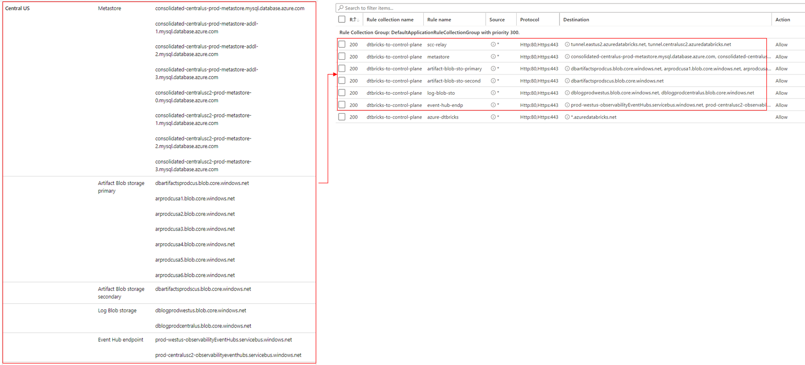 ②ファイアウォール側で、Azure Databricksワークスペースに必要なトラフィックを制限するためのルールを追加します。