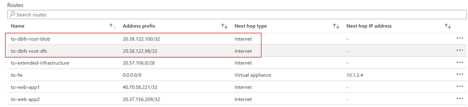 Databricksワークスペースのデプロイが成功した後、Databricks のDBFS root Storage IPをUDRに追加します。