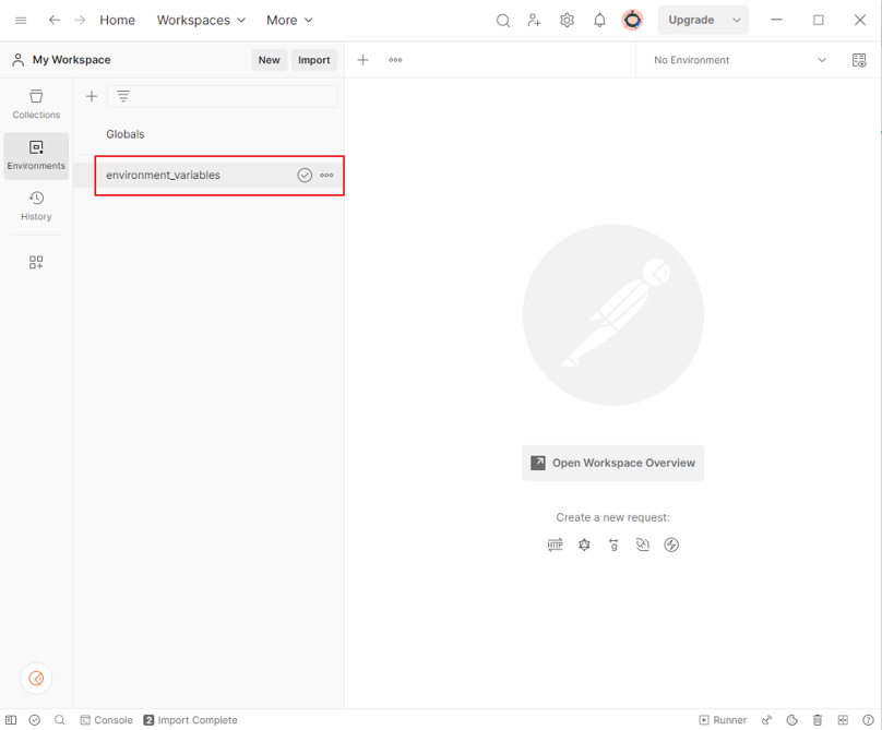 ファイルをアップロードした後、「environment_variables」環境が表示されます。