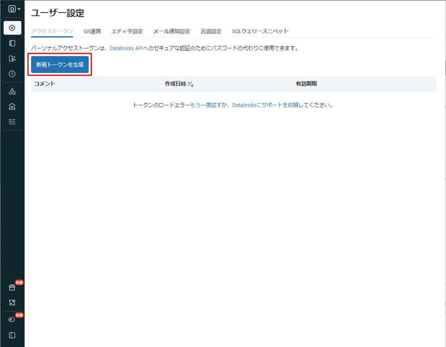 まず、Azure Databricks ユーザーに Azure Databricks 個人用アクセス トークンを作成します。