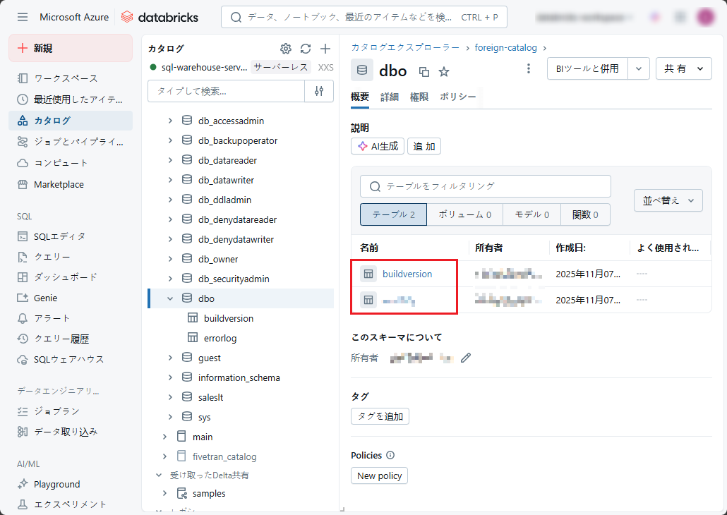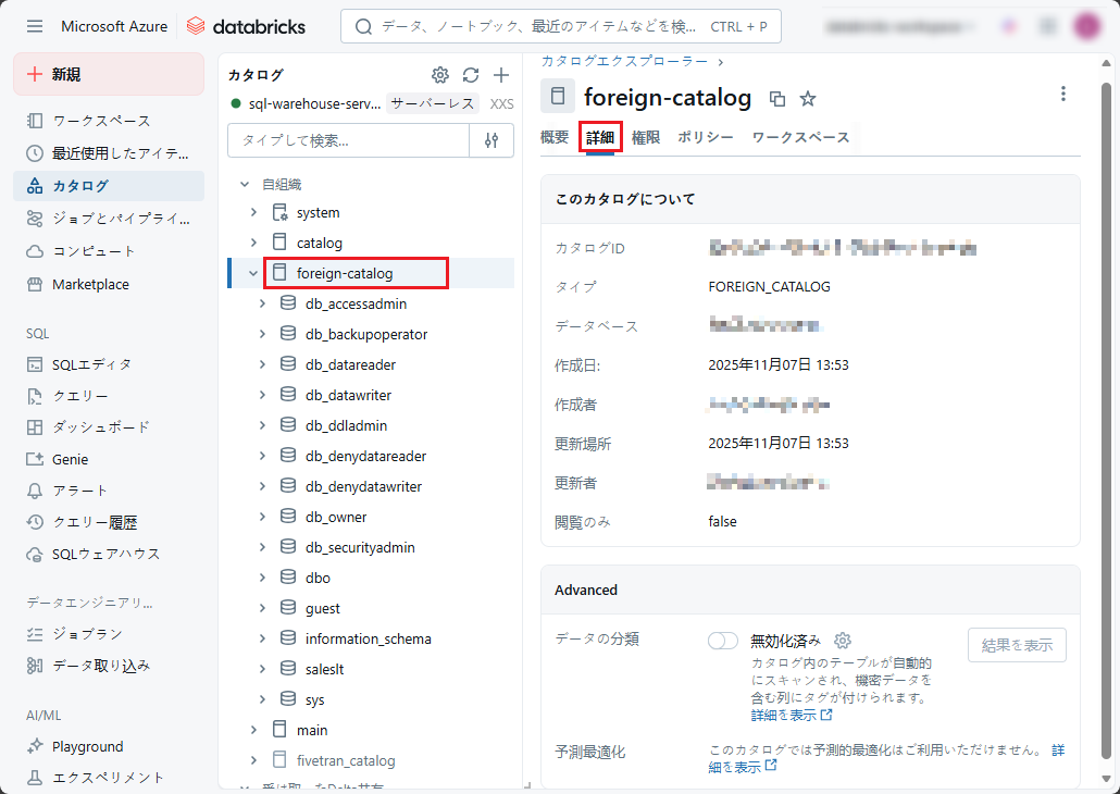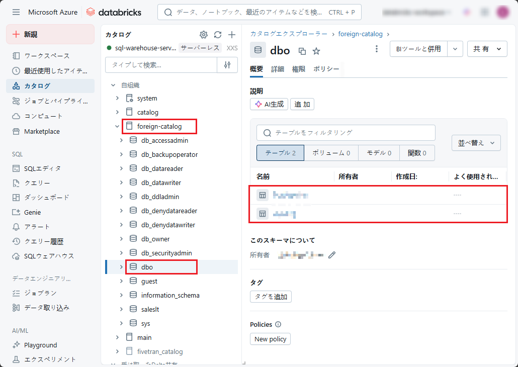 ※これは、Lakehouseフェデレーションを使用して外部データ システムのデータベースをミラーリングするセキュリティ保護可能なオブジェクトです。