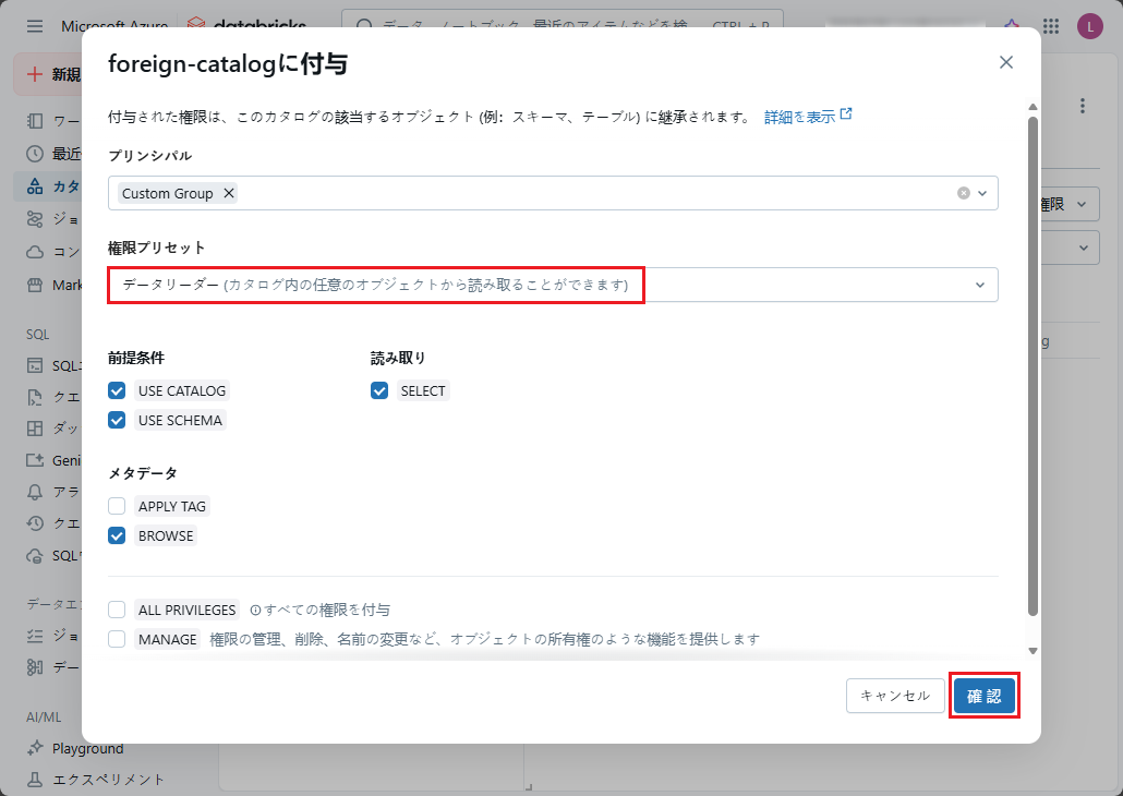 4-3.外部カタログ内のデータへの読み取り専用アクセス権を付与する