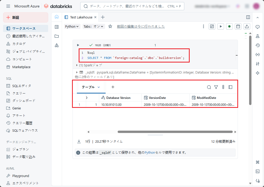 以下のSQLコマンドをコピーしてノートブックに貼り付け、実行します。