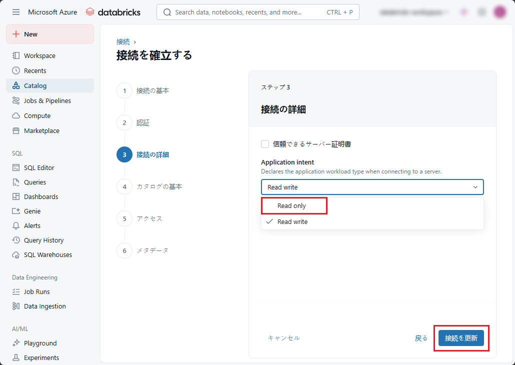 既存の接続の管理については、「Lakehouse フェデレーションの接続の管理」を参照してください。